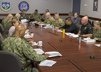 ![]() The Northern Command Battle Staff meet in a planning session with U.S. Customs and Border Protection officials in Colorado Springs, Colorado, on October 28, 2018. | |