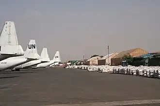 The first of these UN interventions, dubbed Operation Rainbow, was launched in 1986 with the support of several donor governments and under the management of the World Food Programme (WFP).[8] It aimed to use planes to fly relief packages to areas that were particularly devastated by the conflict. UN officials believed that a "food neutral program" where food aid would be equally provided to both the Sudanese government and the SPLM/A would be the most effective at mitigating the effects of the crisis.[9] One of the first tests of this neutral model came with the attempted concurrent distribution of aid to the SPLM/A held city of Yirol and the government held city of Wau.[9] But, the Sudanese government, fearing negative international media attention because of the dire state of affairs in Wau, rejected the plan, causing UN officials to backtrack their distribution of aid to Yirol due to fears of losing their credibility as a neutral humanitarian actor.[9] This failure was compounded by the Sudanese government under Sadiq al-Mahdi declaring that they would not be able to guarantee the security of airports in the south of Sudan where the UN and non-governmental organizations would need to fly in to distribute aid.[9] The Sadiq government, citing concerns amid frustration with perceived overbearing attitude of the UN and WFP officials involved in the effort, declared that they would no longer support the equal distribution of food to both it and the SPLM/A.[9] The SPLM/A began to similarly opposed the principle of food neutral aid and formed their own humanitarian organization known as the Southern Relief and Rehabilitation Association (SRRA).[10] Amidst this rejection by both parties, international actors lost interest and viewed the operation as a publicity stunt that failed to consider sovereignty.[10]