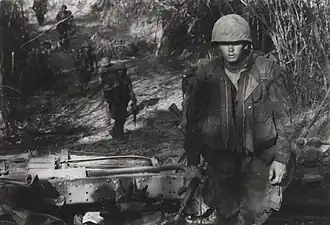 ![]() 2/3 Marines pass a destroyed PAVN truck | |||||||