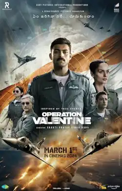 Operation Valentine is a 2024 Indian action drama film[2] based on the 2019 Pulwama Attack and the retaliatory Balakot Air Strikes of 2019 by the Indian Air Force directed by Shakti Pratap Singh Hada, in his directorial debut, and produced by Sony Pictures and Sandeep Mudda, with co-production by God Bless Entertainment and Nandkumar Abbineni. It was shot simultaneously in Telugu and Hindi.[3] It stars Varun Tej, Manushi Chhillar, and Mir Sarwar with Navdeep in a cameo appearance.[4] It marks the Hindi film debut of Tej and the Telugu film debut for Chhillar. The film was released in theaters worldwide on 1 March 2024 to mixed reviews from critics and audiences.