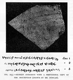 - ^ Faigenbaum-Golovin, Shira; Rollston; Piasetzky; Finkelstein; Sober (2015). "The Ophel (Jerusalem) Ostracon in Light of New Multispectral Images". Semitica: 113–137.