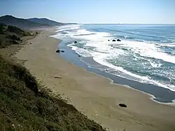 Ophir Beach is an undeveloped sandy beach on the Oregon Coast seven miles north of Gold Beach in Curry County, United States.[1] It is more than 8.5 kilometres (5.3 mi) in length with the south end at Nesika Beach and the north end at a cape named the Devils Backbone.[2][3] The beach is bounded by U.S. Route 101 on the east. Euchre Creek flows westward to the ocean cutting through the northern third of the beach.[4]