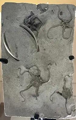 Extremely well-preserved fossils of Ophiura ophiura (=Ophiura texturata) have been recorded from a Late Pliocene and early Pleistocene-aged fossil assemblage near Parma, Italy. They inhabited an offshore ecosystem off the paleo-Adriatic Sea between hypoxia events; during hypoxia events, they are replaced in the assemblage by the more tolerant Ophiura albida.[10]