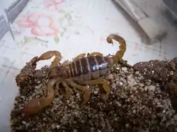 This scorpion is quite nervous and can display defensively. It should not be kept communally, as fights and cannibalism are frequent. The toxicity of its venom is usually deemed to be low, though its sting can be quite painful.