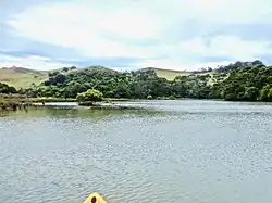 2004[10] and 2012 Regional Council vegetation surveys reported the river mouth and the saltmarsh, up to a small rapid in the River, as having mangroves (mānawa), manuka, mingimingi, cabbage trees (tī kōuka), remuremu, sea rush, oioi, saltmarsh ribbonwood (mākaka), flax, sea primrose, leptinella dioica, giant umbrella sedge (Toetoe upokotangata), tall fescue, coastal daisy and celery.[11]