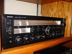 During this period Optonica still offered analog AM-FM tuners and amplifiers, but they were being eliminated, especially the high-powered and expensive models. The new digital tuners and amps were now offered with a Toroidal power transformer that allowed for high performance in a smaller size, offering two to three times the capacity of conventional transformers. This allowed for the new digital tuners and receivers to be much smaller in size, compared with the conventional line of analogue receivers, amps and tuners. Model numbers consisted of ST-7405 and ST-4405 for tuners and SM-7305 and SM-4305 for amplifiers. One notable product offering was SM-9005. An integrated amplifier featuring a new zero-switching direct coupled amp circuitry with 0% switching distortion.[5] This amplifier produced 100 watts minimum RMS per channel into 8 ohms from 20 Hz to 20 kHz with no more than 0.0095% THD!.[6]