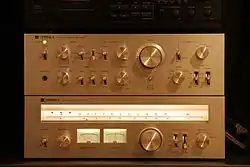The second series was offered in 1979 and the line was expanded and redesigned with products that covered the entire spectrum of the high-end market. The receiver line consisted of model numbers SA-5901/5905, SA-5601/5605, SA-5401/5405, SA-5201/5205 and SA-5101/5105. The receivers were offered in both silver and black. The top of the line consisted of model numbers SA-5901 and SA-5905, and this series offered 125 watts minimum RMS per channel into 8 Ohms from 20 Hz-20 kHz with no more than 0.02% T.H.D.[3] One of the unique features of the top-of-the-line product SA-5901/5905 and SA-5601/5605 was the ability to turn off the radio section while still using the receiver as an amplifier.