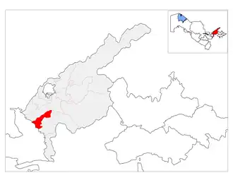 Oqqoʻrgʻon (Uzbek: Oqqoʻrgʻon tumani) is a district of Tashkent Region in Uzbekistan. The capital lies at the city Oqqoʻrgʻon.[1] It has an area of 400 km2 (150 sq mi)[2] and its population is 130,100 (2021 est.).[3]