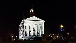 The courthouse is one of the two oldest courthouses in Indiana that have been used continuously, the other being in Rising Sun, Indiana (Ohio County). The Orange County Courthouse was built 1847–1850. It is a good example of the Greek Revival style of architecture. The courthouse is distinguished by a Doric portico with six fluted columns.[2]
