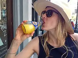 His son, Jean-Claude Beton, took over the company in 1947.[5][6] Jean-Claude Beton kept most of the original recipe, which he marketed to appeal to European and North African consumers.[5] Orangina quickly became a common beverage throughout French North Africa.[6] In 1951, Jean-Claude Beton introduced Orangina's signature 250 ml bottle, which became a symbol of the brand.[5] The bottle recalls the rounded shape of an orange, with a glass texture designed to mimic the fruit.[5]