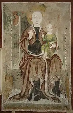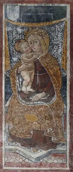 Madonna enthroned with Child (Maestà) | The Ferros dated the work to the early 1400s, contemporary with the adjacent Saint Helena and Pietà.[21]