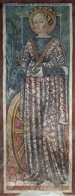 Saint Catherine of Alexandria | Massara attributed the work to Tommaso Cagnola, who created it in the same years as the Madonna with patron and Saint Francis, around 1481.[25] |