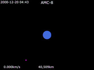 Orbit of AMC-8 satellite around the Earth in 2000, transferring from a geostationary transfer orbit to a geostationary orbit