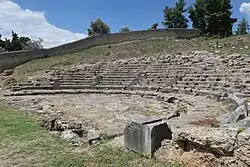 The theatre was built around the end of the 4th century BC. The cavea, with seats for the spectators, the orchestra and part of the scena are all preserved. It was in use until late Roman times (4th century AD).