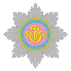 Insignia consists of the pendant, star, collar and sash. The pendant and star design is the same as for the Knight Grand Cordon.