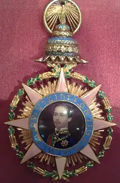 The Most Illustrious Order of Chula Chom Klao (Thai: เครื่องราชอิสริยาภรณ์จุลจอมเกล้า; RTGSKhrueang Ratcha-itsariyaphon Chunla Chom Klao) was established on 16 November 1873 by King Rama V of The Kingdom of Siam (now Thailand)[1] to commemorate the 90th Jubilee of the Chakri Dynasty and bears his name (จุลจอมเกล้า Chula Chom Klao). The pink colour reflects the Tuesday birthday colour for King Rama V.