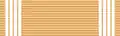 The ribbon is gold with four cream-coloured lines inset from each edge and a pattern of recurring stylised dancing figures down the centre. All three classes are worn around the neck.