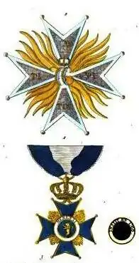 The Order of the Lion of Bavaria was created in 1768 by Charles IV Theodore, Elector Palatine, to celebrate the 25th year of his reign. Originally called the Order of the Palatine Lion (Orden vom Pfälzer Löwen), the Order was renamed when the Palatinate-Sulzbach branch of the House of Wittelsbach inherited the Electorate of Bavaria in 1778. The number of knights of the order were limited to 25, including the chancellor, or head of the order. Recipients of the order were originally required to have served the elector house for 25 years in the army or administration, and had to pay 25 ducats for entrance fee.[1] In 1808, Maximilian I Joseph of Bavaria declared the order extinct and made no subsequent awards. Instead, the Order of Merit of the Bavarian Crown was established, two years after the establishment of the Military Order of Max Joseph.[2] The insignia of the Military Merit Order, established 1866, resembled to the ones of the Order of the Lion.