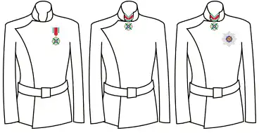 The insignia, modified in 2001, bore the inscription Solidarietà Italiana encircling a depiction of the Good Samaritan.[3] The order was bestowed by decree of the President of the Republic, head of the order, on the recommendation of the Minister of Foreign Affairs.