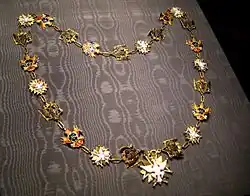 The Order of the White Eagle (Polish: Order Orła Białego) is the highest honour of the Republic of Poland and formerly the Second Polish Republic and the Polish–Lithuanian Commonwealth and one of the oldest state decorations in the world still in use. It was officially instituted on 1 November 1705 by Augustus II the Strong, King of Poland and Elector of Saxony, and bestowed on eight of his closest diplomatic and political supporters.[1] It has since been awarded to the most distinguished Poles for their merits and occasionally to the heads of state of foreign countries.