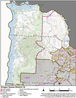 District 16 of the Oregon State Senate comprises all of Clatsop, Columbia, and Tillamook counties as well as western portions of Multnomah and Washington counties and a small sliver of northern Yamhill County.[1] It consists of Oregon House districts 31 and 32. It is currently represented by Republican Suzanne Weber.