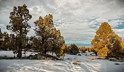 Native vegetation in the Oregon Badlands Wilderness have adapted to the less than 12 inches (30 cm) of annual rainfall. Western juniper can live to be over 1,000 years old in the region. The oldest dated tree in Oregon – estimated to be over 1,600 years old – grows near the wilderness.[8]