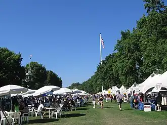 Oregon Brewers Festival (OBF) is a four-day craft beer festival held annually from 1988 to 2019 and 2022 at the Tom McCall Waterfront Park in downtown Portland, Oregon, except in 2020-21 when the COVID-19 pandemic and 2023 when low attendance and hot weather from last year caused it to be cancelled.[1] OBF has become the most popular outdoor beer festival in North America, based on attendance.[3] Each brewery brings one beer.[1][4] The attendance peaked in 2014, however it has been declining since.[5] There is a Root Beer Garden for those who are under 21 or abstain from alcohol.