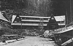 The buildings in the Oregon Caves Historic District illustrate the National Park Service rustic-style architecture. The historic structures remain generally intact with only a few minor exceptions necessary for general site rehabilitation due to landslide, flood damage, and safety codes.[7] The Oregon Caves Historic District has four primary buildings plus two other structures. The primary buildings are the Chalet, built in 1924 and reconstructed in 1942; the Oregon Caves Chateau built in 1934; the Guide Dormitory, built in 1927 with major additions in 1940 and 1972; and the Ranger Residence, built in 1936. The most noteworthy of these is the Chateau, which is individually listed on the National Register of Historic Places (NRHP # 87001346).[6]