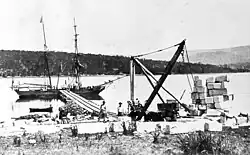 Orford's early settlers were primarily engaged in farming, fishing, and timber work. However, the town's geography limited its growth as a port, with the sandbank at the mouth of the Prosser River preventing large vessels from entering.[4] The road south of the town, known sarcastically as "Paradise Gorge", was notorious for its poor condition and was widely considered the worst in the colony.[5]