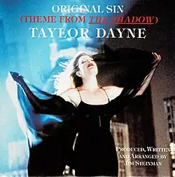 "Original Sin (Theme from the Shadow)" is a song produced, written and arranged by Jim Steinman. Steinman originally wrote, composed, and produced the song for the album of the same name by the musical team called Pandora's Box titled as "Original Sin (The Natives Are Restless Tonight)". American singer Taylor Dayne covered the song (singing to a stripped-down version of the backup tracks recorded for Pandora's Box), and it was released as a single on June 26, 1994 by Arista Records, and included in the soundtrack to the 1994 film The Shadow, starring Alec Baldwin. This version of the song has slightly altered lyrics referring to the themes of the movie (a line about 'evil lurking in the hearts of men today' based on the intro to "The Shadow" radio program) different from the ones sung by Meat Loaf on Welcome to the Neighborhood and Pandora's Box. The photograph displayed on the cover of Dayne's single was shot by Alberto Tolot, taken on the set of its music video.