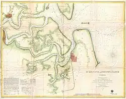 By March 5, Patriot leader and wealthy Florida planter John Houstoun McIntosh claimed that the Patriots had successfully subjugated the area between the St. Marys and the St. Johns Rivers, and were planning next to take Amelia Island.[24] On March 16, nine American gunboats under the command of Commodore Hugh Campbell formed a line in the harbor and aimed their guns at the town.[25][26] General Mathews, still ensconced at Point Peter on the St. Marys in Georgia, ordered Colonel Lodowick Ashley to send a flag to Justo Lopez, commandant of the fort and Amelia Island, and demand his surrender. Lopez acknowledged the superior force and surrendered the port and the town. On March 17 John H. McIntosh, George J. F. Clarke, Justo Lopez, and others signed the articles of capitulation;[27] the Patriots then raised their own standard. The next day, a detachment of 250 regular United States troops were brought over from Point Peter, and the newly constituted Patriot government surrendered the town to General Matthews, who had the stars and stripes of the U.S. flag raised immediately.[25] The Patriots had held Fernandina for only twenty-four hours before turning authority over to the U.S. military.