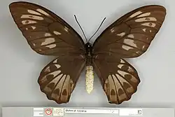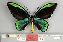 This butterfly is, because of its rarity, one of the most valuable in the world, with male specimens typically selling for more than £4,000 (US$7,000). It is said to be an ideal candidate for commercial exploitation because its parents are not rare on Bougainville Island, and they may be easily induced to mate with one another.[1]