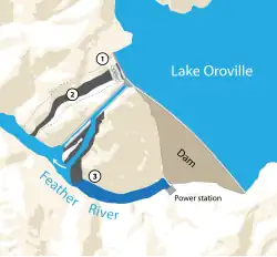 1. ^ a b c d e "Oroville Facilities (FERC Project No. 2100)" (PDF). California Department of Water Resources. January 2005. Archived from the original (PDF) on May 25, 2017. Retrieved February 13, 2017.