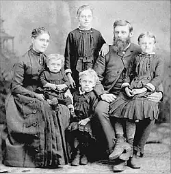 In the 1870s Orpha Woods Foster moved to Santa Barbara with her mother, her father died the year after she was born. In August 1874 she married Eugene Preston Foster (1848-1932) and had ten children: Orpha W. Foster (1875-1973), Lucy Foster (1877-1877), Grace Foster Percy (1878-1972), Edith Annie Neel Foster Mercer (1881-1974), Ida Foster Baker (b. 1885), Aleck C Foster (1887-1888), Willis E. Foster (1888-1889), Frank. P Foster (1888-1889), Mildred Foster Ranger Allen (1892-1930), Eugene C. Foster (1895-1903).[1][3]