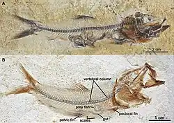 - ^ Konwert, Martin (24 Feb 2016). "Orthogonikleithrus francogalliensis, sp. nov. (Teleostei, Orthogonikleithridae) from the Late Jurassic Plattenkalks of Cerin (France)". Journal of Vertebrate Paleontology. 36 (3): e1101377. doi:10.1080/02724634.2016.1101377. S2CID 88135367.