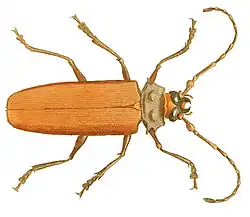 Orthomegas cinnamomeus is a species of beetle in the genus Orthomegas of the family Cerambycidae. It was described by Carl Linnaeus in his landmark 1758 10th edition of Systema Naturae.[1] It is found in Hispaniola, Trinidad, Colombia, Venezuela, the Guianas, Brazil, Ecuador, Peru and Bolivia.