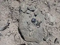 The younger intrusions in the belt are increasingly alkaline in composition,[1] and include the 25-26 Ma Cieneguilla basanite. This is a small-volume extrusive unit exposed around the village of La Cienega that may represent the earliest stages of opening of the Rio Grande rift. The basanite is characterized by larger olivine crystals (phenocrysts) in a very fine-grained matrix of clinopyroxene, magnetite, and nepheline, with a total silica content of 42.40-44.10 wt % and a high magnesium oxide content (11.50-13.50 wt %). This places the basanite among the most primitive magmas of the central Rio Grande rift, meaning that the magma was practically unaltered during its ascent to the surface from its origin in the upper mantle of the Earth. Isotope data suggests that the basanite came from mixed mantle source regions.[2]