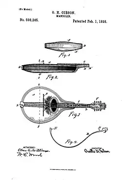 7. ^ a b US 598245, Gibson, Orville, "Mandolin", published 1898