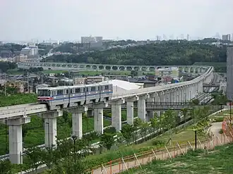 Osaka Monorail Saito Line (大阪モノレール彩都線, Ōsaka Monorēru Saito sen) is the monorail route of the Osaka Monorail which runs from Banpaku-Kinen-Koen in Suita, Osaka Prefecture to Saito-nishi Station. The line opened in two stages – on 1 October 1998, from Bampaku-kinen-koen Station to Handai-byoin-mae Station, and on 19 March 2007, to Saito-nishi Station, in Ibaraki, about a kilometer from the Osaka University of Foreign Studies in Minoh. The branch is 6.8 km (4.2 mi) long.[1]