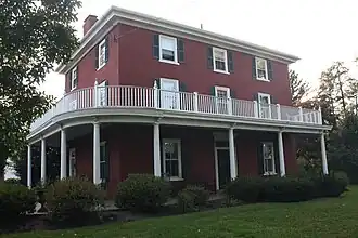 The farmhouse was built in 1840, and is a three-story, three-bay, stuccoed masonry residence with a hipped roof. It features a one-story wraparound porch. A decorative balustrade was added in 1954. Also located on the property is a contributing bank barn.
