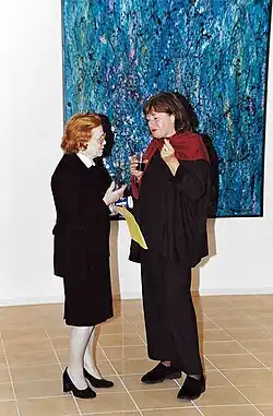 Ingeborg Martay (Renate Barken) and visitor. Exhibition opening of the artist Rengha Rodewill, Berlin-Mitte (2000)