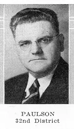Paulson was a member of the Senate from 1937 to 1940. He was a member of the Wisconsin Progressive Party.