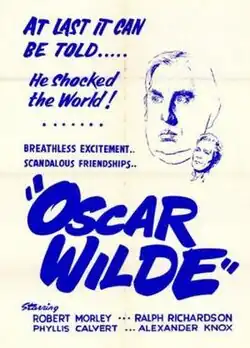 Oscar Wilde is a 1960 biographical film about Oscar Wilde, made by Vantage Films and released by 20th Century Fox. The film was directed by Gregory Ratoff and produced by William Kirby, from a screenplay by Jo Eisinger, based on the play Oscar Wilde by Leslie Stokes and Sewell Stokes. The film starred Robert Morley (as Oscar Wilde), Ralph Richardson, Phyllis Calvert and Alexander Knox.
