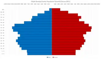 Population pyramid of Osijek-Baranja county per the 2011 Census