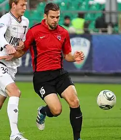 In June 2010 Kļava went on trial with the Russian Premier League club Anzhi Makhachkala and signed a three-year contract with them in August the same year.[4] He was given the nr. 83 jersey at the club and, despite his surname being Kļava, he had his name Oskars written on it. He made his Premier League debut in the 17th round match against CSKA Moscow, coming on as a substitute on 15 August 2010.[5] In his first season in Makhachkala Kļava appeared in 11 Premier League matches, as well as 12 reserve team games, scoring 1 goal.[6] He lost his place in the starting line-up after the arrival of the Brazilian legend Roberto Carlos.