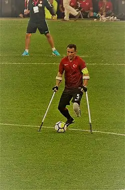 In 2010, he was admitted to Turkey's national amputee team.[4] He participated in the European and world championships in 2010,[4] 2012 and 2014. The national team placed third among 24 nations. He captained the national team,[1] which became champion of the 2017 European Amputee Football Championship and the runner-up of the 2018 Amputee Football World Cup.[1][5]31