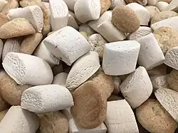 Also known as nucatoli, mustazzoli,[2] scardellini,[3][4] scardellini, moscardini[5] or paste di garofano,[4][6] they are prepared on the occasion of the commemoration of the deceased and have the shape of small human bones.[7]