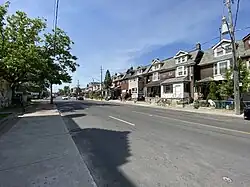 North of Bloor Street, the street rises gently until just before Davenport where it reaches the old shoreline and the street rises rapidly to meet Davenport. Except for some businesses around the railway bridge north of Dupont, both sides of the street are two-storey residences.