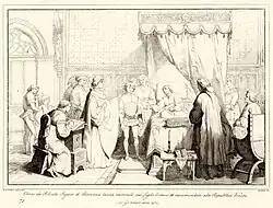 ![]() Obizzo da Polenta entrusting his son Ostasio to the Republic of Venice | |