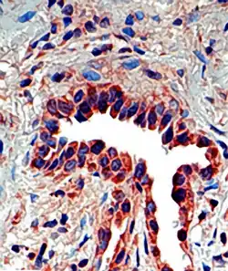 - ^ Mirza M, Shaughnessy E, Hurley JK, Vanpatten KA, Pestano GA, He B, Weber GF (February 2008). "Osteopontin-c is a selective marker of breast cancer". International Journal of Cancer. 122 (4): 889–897. doi:10.1002/ijc.23204. PMID 17960616. S2CID 22146646.